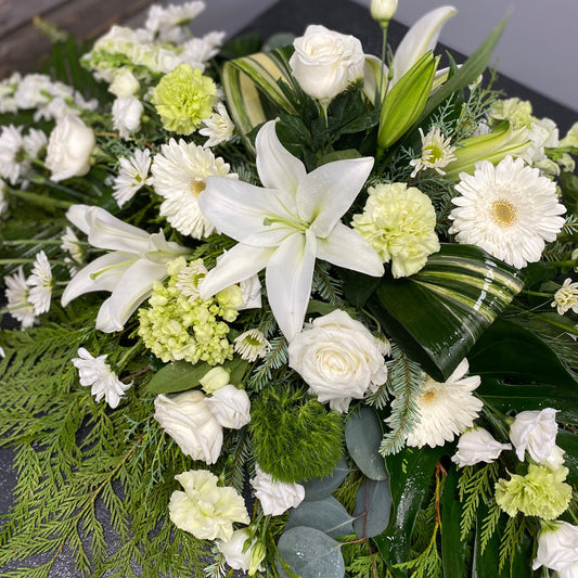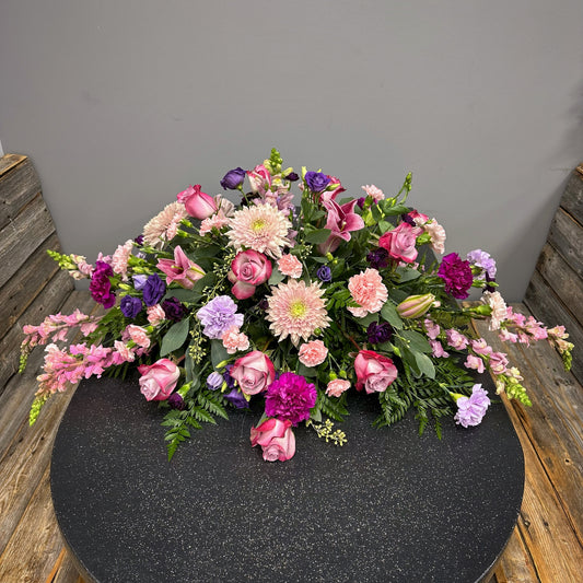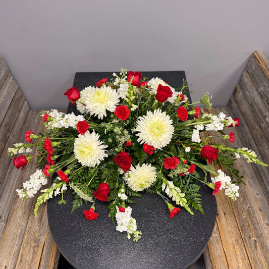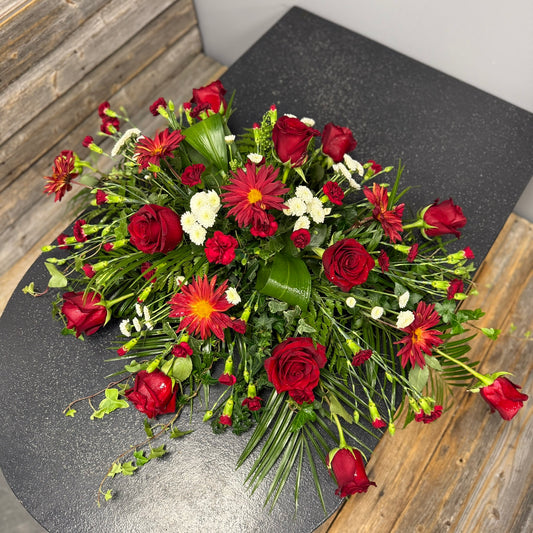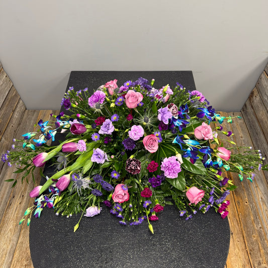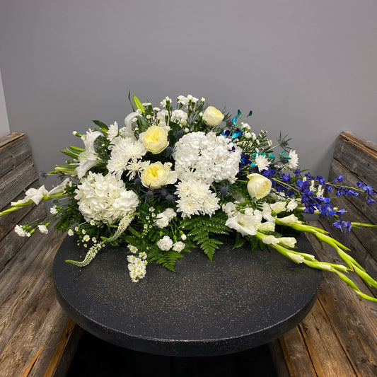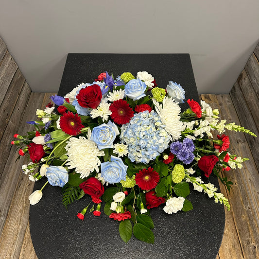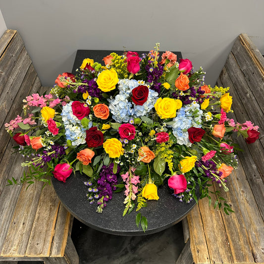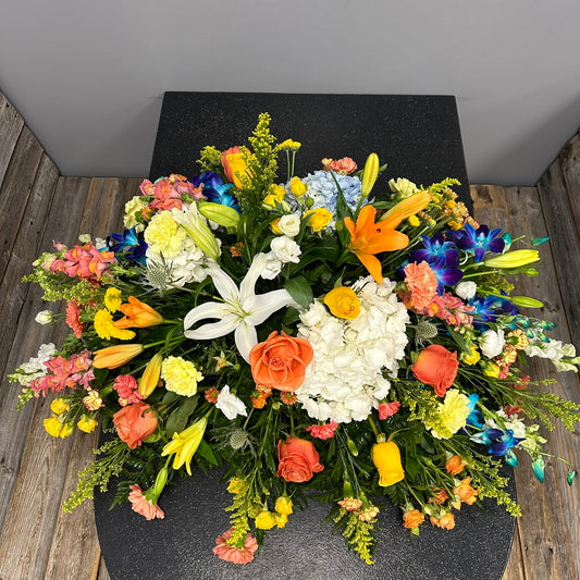 Choose The BloomBox's Casket Tributes to offer a final farewell that embodies love, respect, and heartfelt remembrance. Let our arrangements provide solace and support during this difficult time, conveying your deepest condolences and paying tribute to the life that was lived.