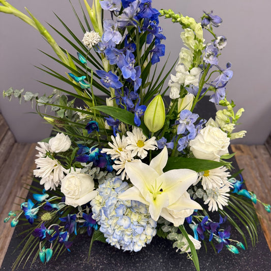 Create a welcoming and comforting atmosphere with The BloomBox's For the Home and the Service collection. Our thoughtfully curated selection of floral arrangements and gifts is designed to bring beauty and solace to both home settings and memorial services. Whether you're looking to add a touch of elegance to your own living space or to express sympathy and support during a time of loss, our creations are crafted with care and compassion.