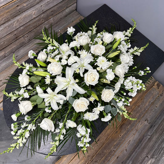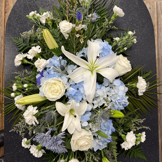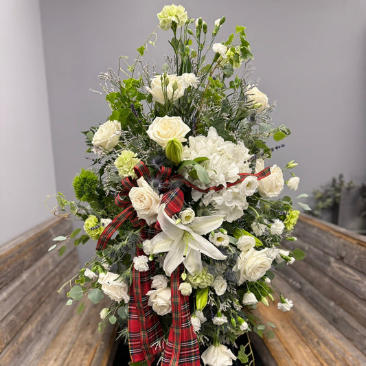 Choose The BloomBox's Wreath and Standing Sprays as a touching tribute, symbolizing everlasting love and remembrance. Let our thoughtfully crafted arrangements serve as a beautiful expression of sympathy and support, providing comfort and honoring the life that was lived.
