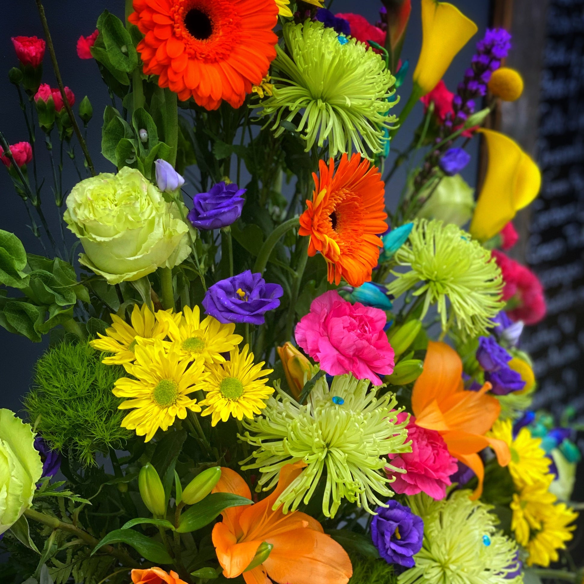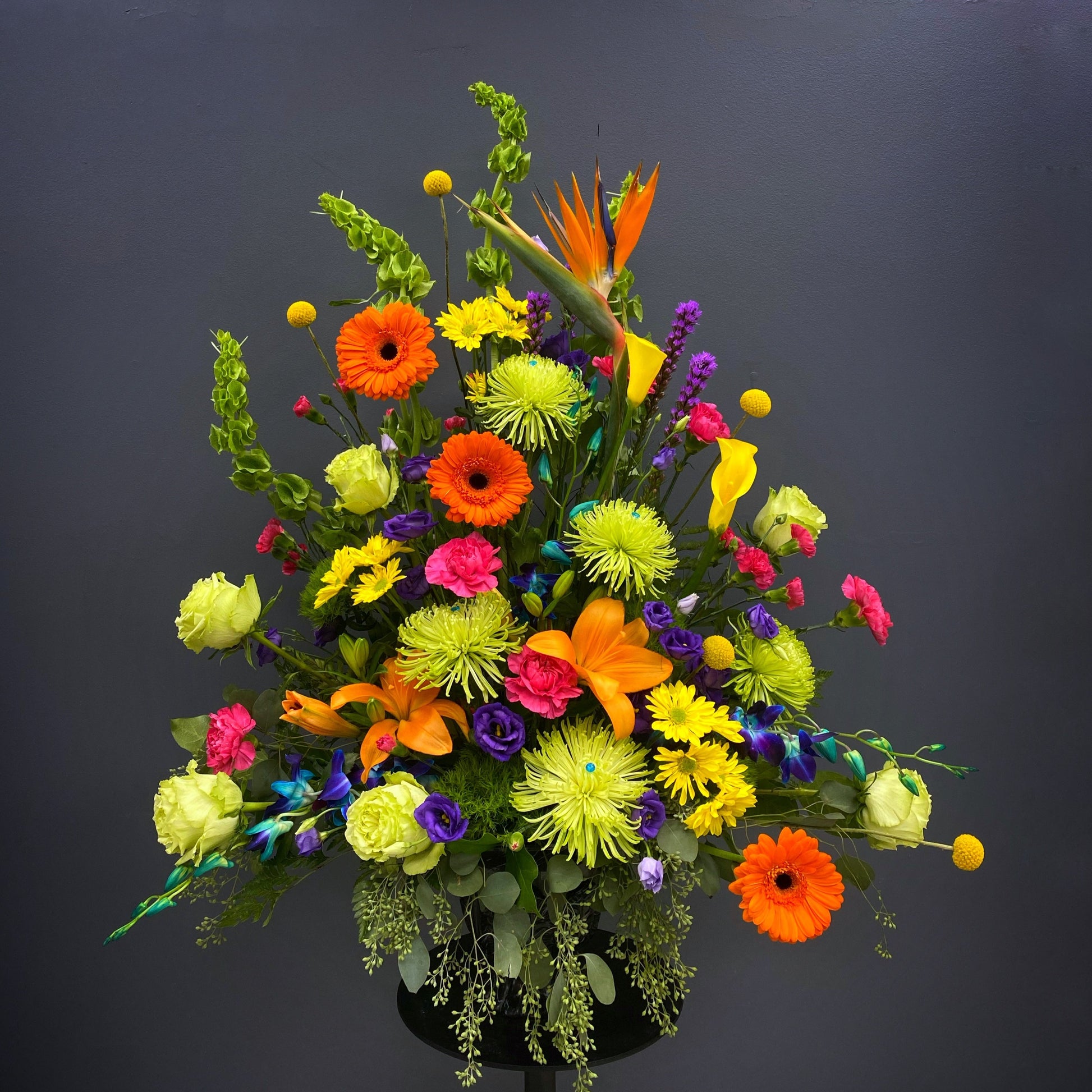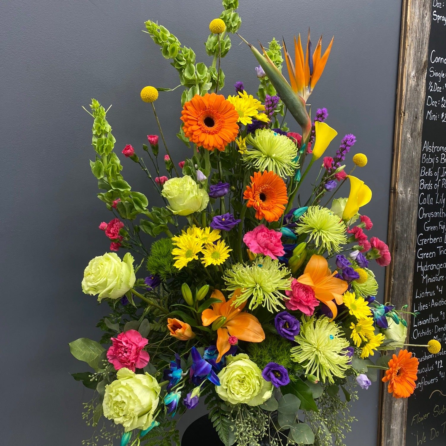 Fresh Flowers: At The BloomBox we are committed to delivering your important emotional sentiments as fresh and beautiful as possible. Because of the nature, seasonality, and regional availability of flowers it is sometimes necessary to make substitutions of equal or greater value. We will make every effort to maintain the "look and feel" of the arrangement by considering the overall shape, size, style, and color combinations. In single-variety arrangements the variety will take precedence over color. For instance, if an order is for yellow daisies, we may substitute another color of daisy, not another yellow flower. White roses and cream roses may be substituted for each other as well as peach roses and pink roses. Purple and pink orchids may need to be substituted for white orchids and vice versa.