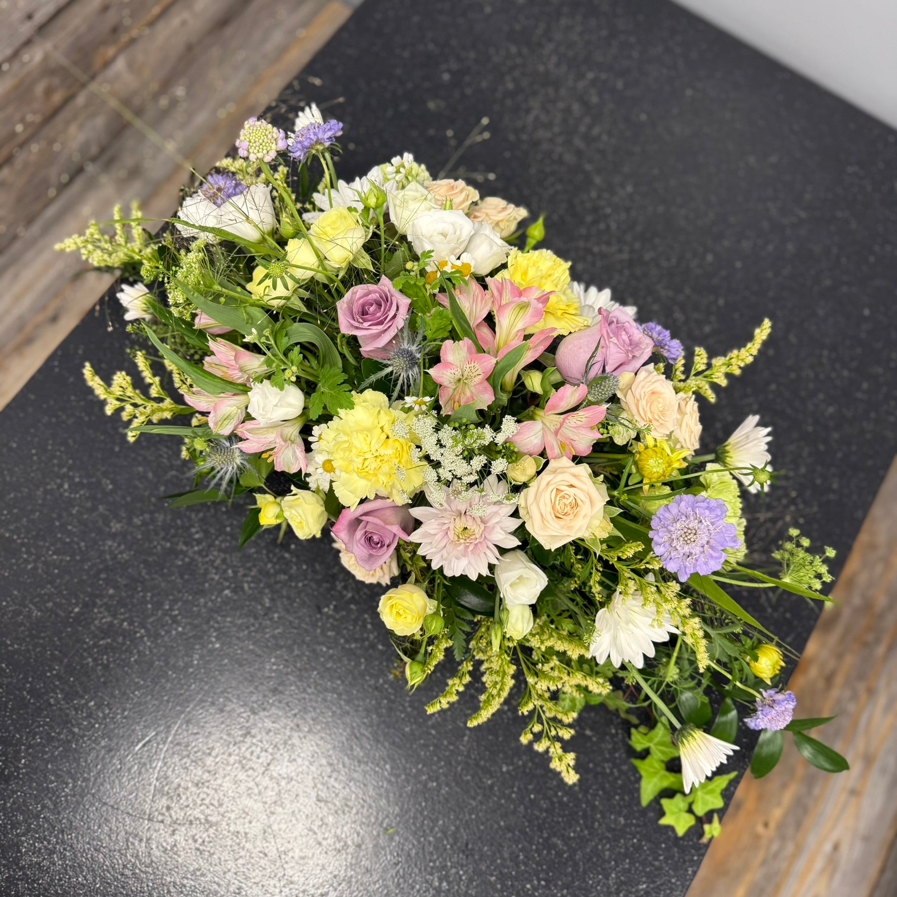 Fresh Flowers: At The BloomBox we are committed to delivering your important emotional sentiments as fresh and beautiful as possible. Because of the nature, seasonality, and regional availability of flowers it is sometimes necessary to make substitutions of equal or greater value. We will make every effort to maintain the "look and feel" of the arrangement by considering the overall shape, size, style, and color combinations. In single-variety arrangements the variety will take precedence over color. For instance, if an order is for yellow daisies, we may substitute another color of daisy, not another yellow flower. White roses and cream roses may be substituted for each other as well as peach roses and pink roses. Purple and pink orchids may need to be substituted for white orchids and vice versa.
