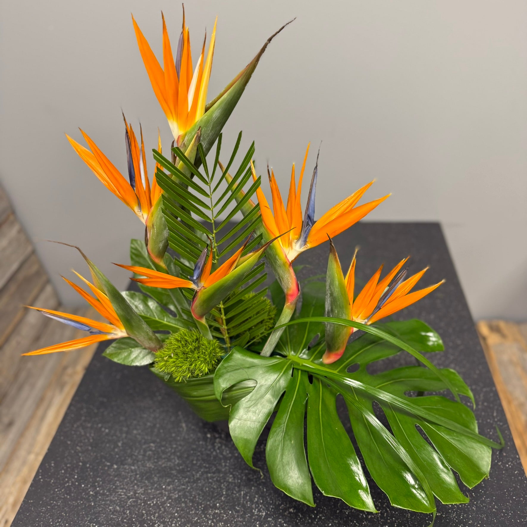 Bring the vibrant spirit of the tropics into any space with this daring arrangement featuring bold birds of paradise and lush tropical greens. Each striking bloom demands attention, creating an exotic display that unleashes fierce elegance and adventurous beauty. Perfect for those ready to make a statement with nature’s wildest colors.